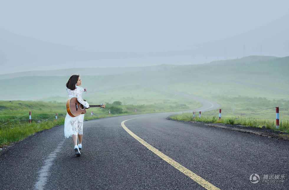 黄英曝光一组高清美图。清晨的小路,朦胧的薄雾笼罩着翠绿的原野,一袭白裙的少女,拿着心爱的吉他,如画的景象并不只存在于诗歌里,仿佛就在我们的眼前,意境感十足!